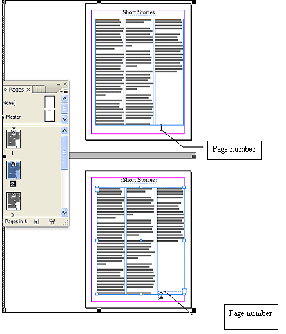 | A master page can be called as a background that can be quickly applied to many pages. Objects on master page appear on all other pages. Changes made to a master are applied to other pages. Master pages commonly contain repeating logos, page numbers, headers, and footers. They can also contain empty text or graphic frames. A master item cannot be selected on a document page unless the master item is overridden. |