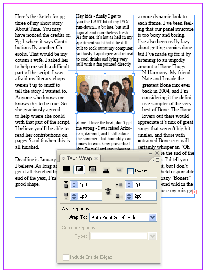 4. From the Wrap To menu, specify whether the wrap is applied to a specific side (such as the right side or largest area) or towards or away from the spine. (If you don’t see the Wrap To menu, choose Show Options from the Text Wrap panel menu.)