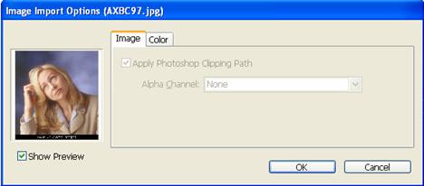 | When you place an InDesign file and select Show Import Options in the Place dialog box, you’ll see a dialog box containing the following options: |