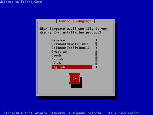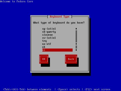| If you don't have an earlier version of Fedora Linux on your system then after the first screen ( just a welcome one); hit Next and then, on the second screen, you'll have to choose your language - default is English. Hit Next again - the third screen will ask you about your keyboard layout - default is U.S. English. |