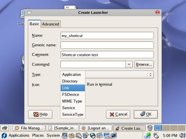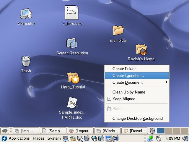 | 1. Right-click on the Desktop and select Create Launcher from the desktop shortcut menu. |