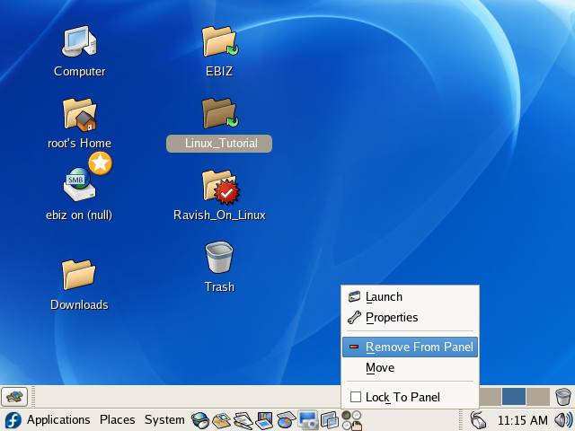 To delete an application icon from the Panel right-click on it and select the "Remove from Panel" option. |