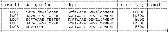 | In our first example, we wish to display the records of only those employees who belongs to Software Development department: |