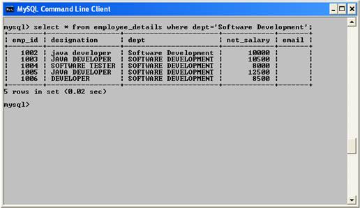 | select * from employee_details where dept='Software Development'; |