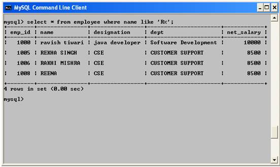 | select * from employee_details where name like 'R%'; |
