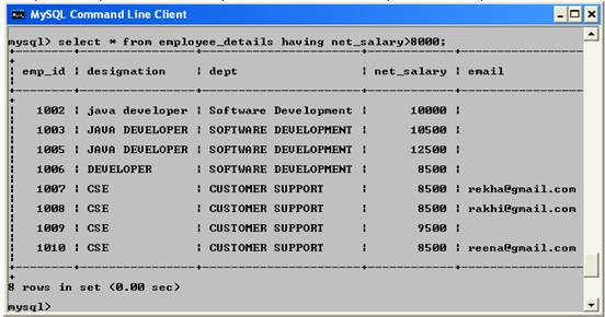 | select * from employee_details having net_salary>8000; |
