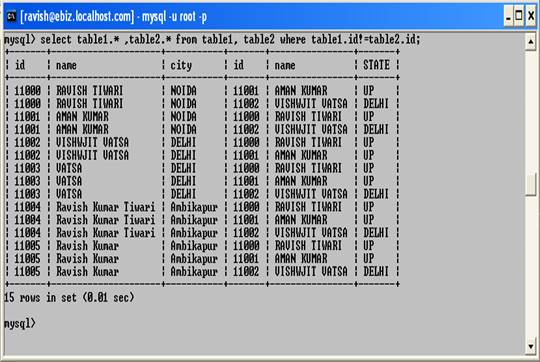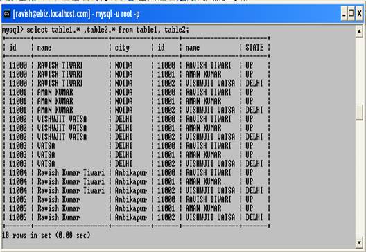 | For example, if you join table1 and table2 as follows, each row in ttable1 is combined with each row in table2: |