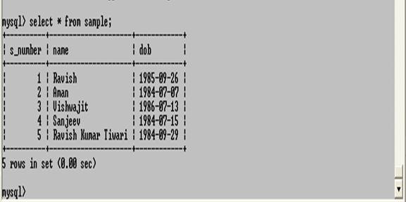 | AUTO_INCREMENT column (S_NUMBER) and dob. |