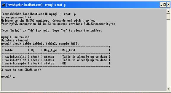 | CHECK TABLE sample, table1, table2 FAST MEDIUM; |