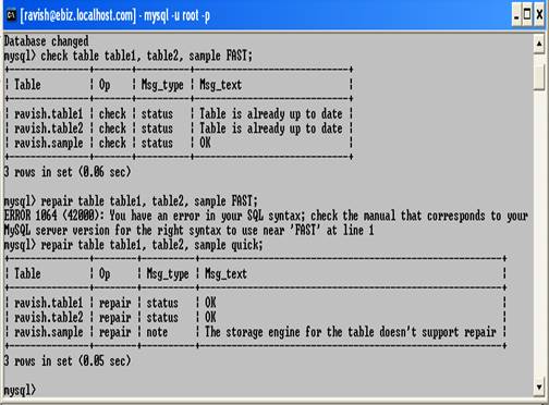| REPAIR TABLE sample, table1, table2 QUICK; |