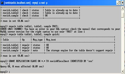 | If youhave in mind to use the commands LOAD TABLE FROM MASTER and LOAD DATA FROM MASTER, then you must also grant replicuser the privileges Select, Reload, and Super. These commands are conceived primarily as aids for the MySQL developer and experts; they can help in setting up and managing a replication system. |