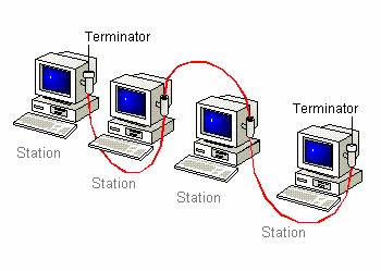 | At each end of the cable there is a terminator. On a bus network, if the connection to one station comes loose, or if a cable breaks, the entire cable segment loses its connectivity. |