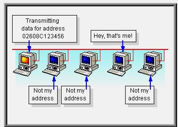 | If the address applies to the station, the station receives and processes the data, otherwise pass it to the next. |