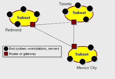 | Each LAN usually has one machine that acts as the entry point into the subnet upon receipt of a data frame; the network address is examined to see if it is one of the networks it is directly connected to. |