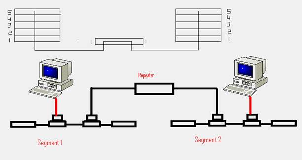 | The whole network is still considered one LAN, but the portions of the network separated by Repeaters are called segments. |