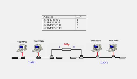 | In the first case, LAN2 remain free of traffic; in the second case, both LANs have traffic. In our example, we show a two port Bridge; in reality a Bridge usually has more ports. |