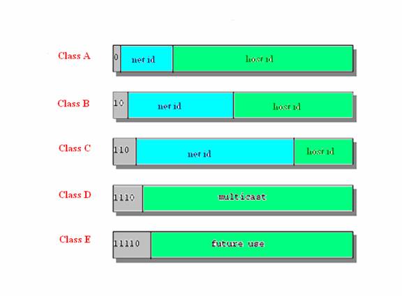 | The first bits of the IP address specify how the rest of the address should be separated into its network and host part. There are five classes of IP addresses. |