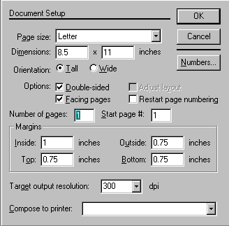 | The Document Setup dialog box allows you to determine what your document will look like. |