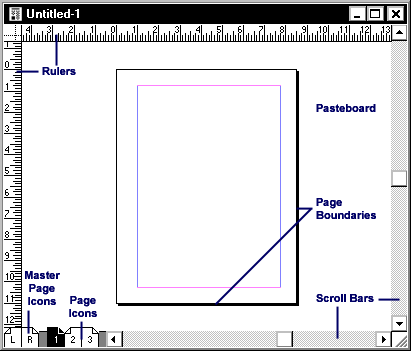 | Like Microsoft Word and other applications, PageMaker has scroll bars to help you move to various points on the current page. Scroll bars are not used to move between pages. |