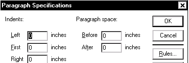6. In the Paragraph Specifications dialog box, click Ok. |