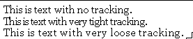 | Tracking refers to the space between individual characters only. Tracking adjusts the relative space between characters so that it gets tighter at larger sizes and looser at smaller sizes. PageMaker offers several tracking options from Very Loose to Very Tight. You can adjust the track for an entire paragraph, a single line, or a few characters. |