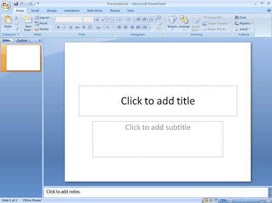| The Power Point 2007 Application Window screen can be customized in various ways. The Power Point 2007 window differs largely from previous versions of Power Point. For those new to Power Point, it is more sensitive. |