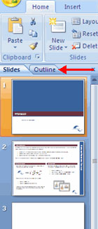 | To access the outline, click the outline tab. |
