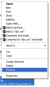 | 2. Right-click the document name with the mouse and select Rename from the shortcut menu. |