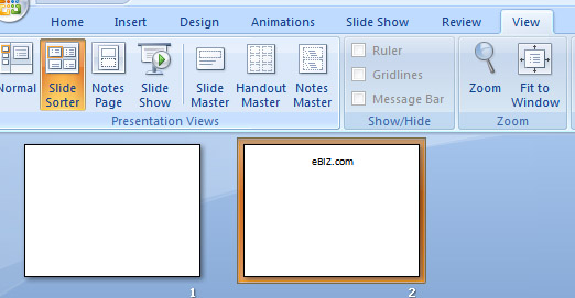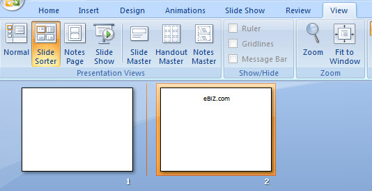 | 3. Click on Slide Sorter. |