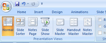 | These are normal, Slide Sorter, Notes Pages, Slide show. |