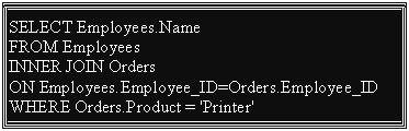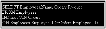 | The INNER JOIN returns all rows from both tables where there is a match. If there are rows in Employees that do not have matches in Orders, those rows will not be listed. |