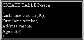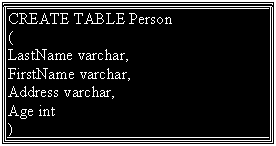 | This example demonstrates how you can create a table named "Person", with four columns. The column names will be "LastName", "FirstName", "Address", and "Age": |