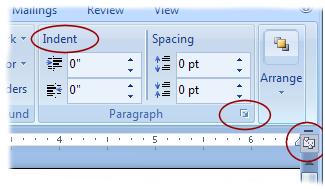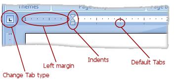 Rather than use the ruler, you can change margins in the Page Layout tab, in the Page Setup group; indents and tabs can also be changed in the Page Layout tab, but in the Paragraph group. Indent is visible, Tabs are found by clicking the Paragraph dialog box button. |
