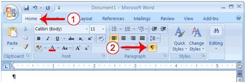 | 2. Click the Hide /Show button in the Paragraph group. The Hide /Show button appears in a contrasting color, when it is selected. |