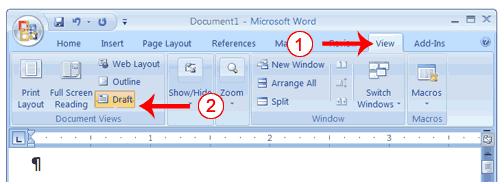 | 2. Click Draft in the Document Views group. When the Draft option is selected it appears in a contrasting color. |
