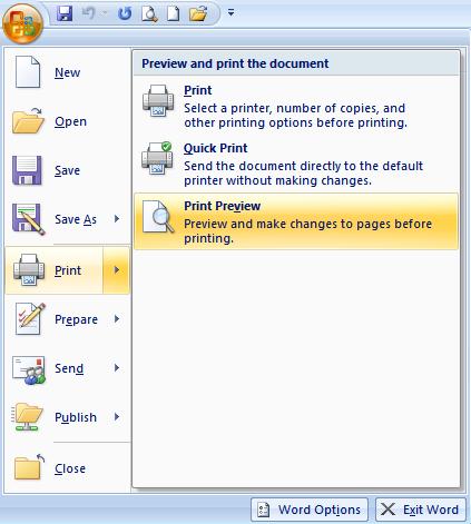 | 3. Highlight "Print" and then select "Print Preview." You will see the document on the screen.; |