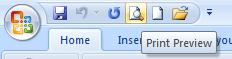 | 4. Look at the options on the Ribbon now that you are in the "Preview" mode. You can change margin size, page orientation, change print options and select many other print functions while in the "Preview" mode. |