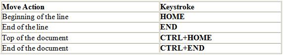| The keyboard shortcuts listed below are also helpful when moving through the text of a document: |