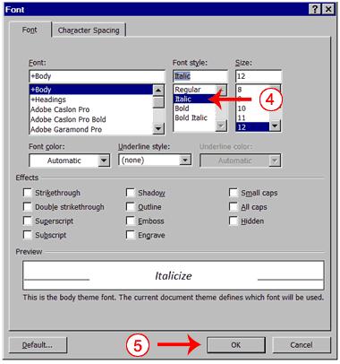 | 4. Click Italic in the Font Style box. | |||