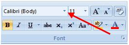 | 1. Click the arrow subsequently to the font name and select a font in the Font group of the Home tab. |