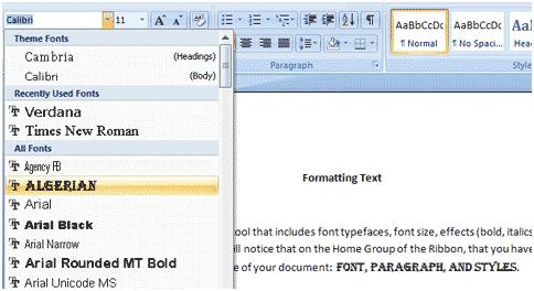 | 2. Remember that you can preview how the new font will look by highlighting the text, and hovering over the new font type. |