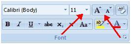 | 1. Click the arrow next to the font size and choose the appropriate size in the Font group of the Home tab. |