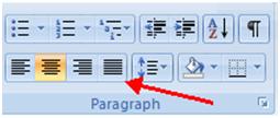 | 2. Choose the appropriate button for alignment on the Paragraph Group. |