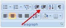 | • To increase the size of the indent : Click the Indent buttons repeated times |