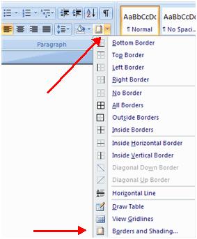 | • Click the Borders Button on the Paragraph Group on the Home Tab | |||