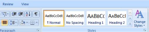 | 1. To change the line spacing in Word 2007, Click on Home tab Ribbon of the Application window. | |||