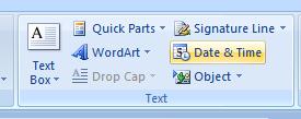| 3. Click the Date & Time button in the text group. |