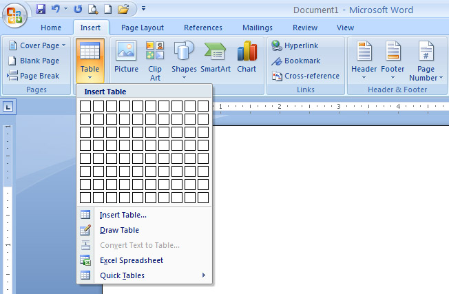 | Microsoft Word 2007 facilitates you to add tables to your documents. Tables are used to display data in a table format. |