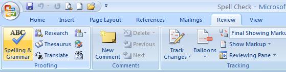 | 1. On the Review tab on the Ribbon, click the Spelling & Grammar button. | |||
