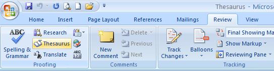 | This feature of word 2007 suggests extra words with a similar meaning to the word you have selected. | |||
